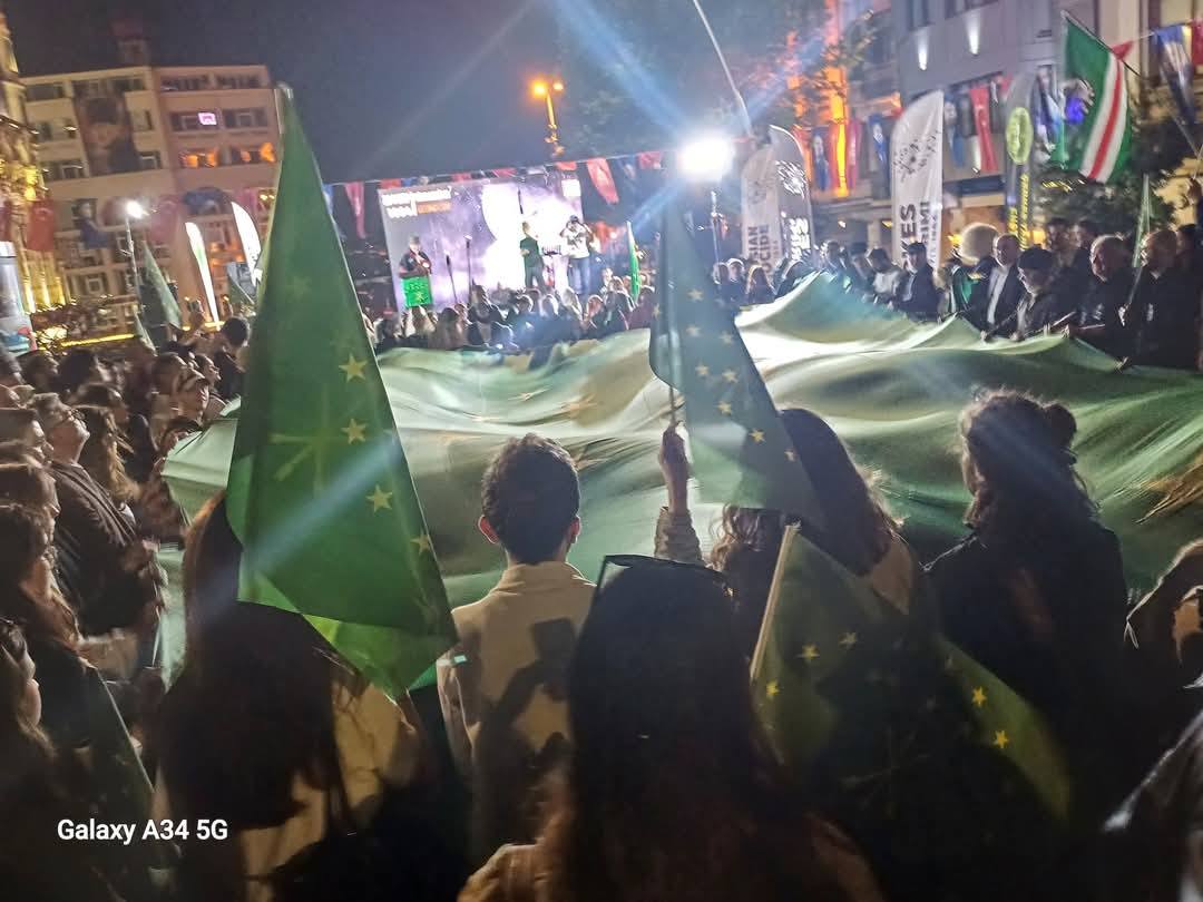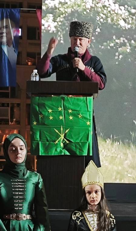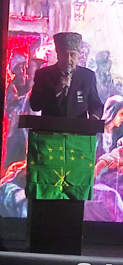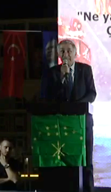 Programın son kısmında açılan dev Çerkesya bayrağı Karadenizin dalgalarını anımsatacak şekilde dalgalandırılırken, Yılmaz Dönmez de atılan sloganlar eşliğinde toplumun acısını ve umutlarını yansıtan şiirsel bir konuşma yaptı.