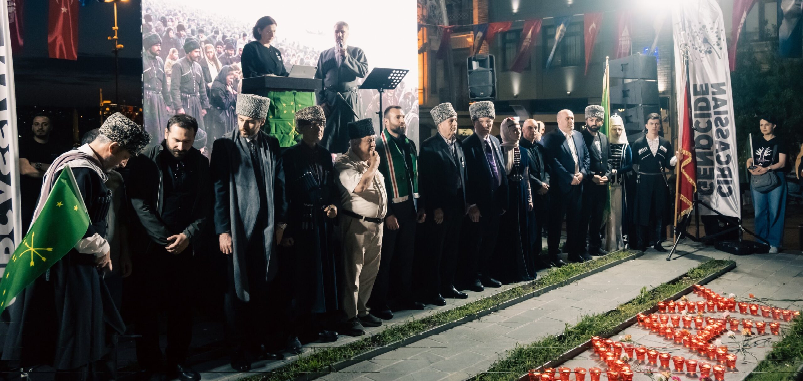 Bilahare sinevizyon eşliğinde sol eller kalp hizasına kaldırılarak Çerkes selamı eşliğinde 1 dakikalık saygı duruşunda bulunuldu. Saygı duruşunun tamamlanmasından sonra İshak Akbay tarafından okunan Yasin-i Şerif’ten kısa bölüm ve Fatihalar soykırım ve sürgün sürecinde hayatını kaybedenlerin ruhlarına bağışlandı.